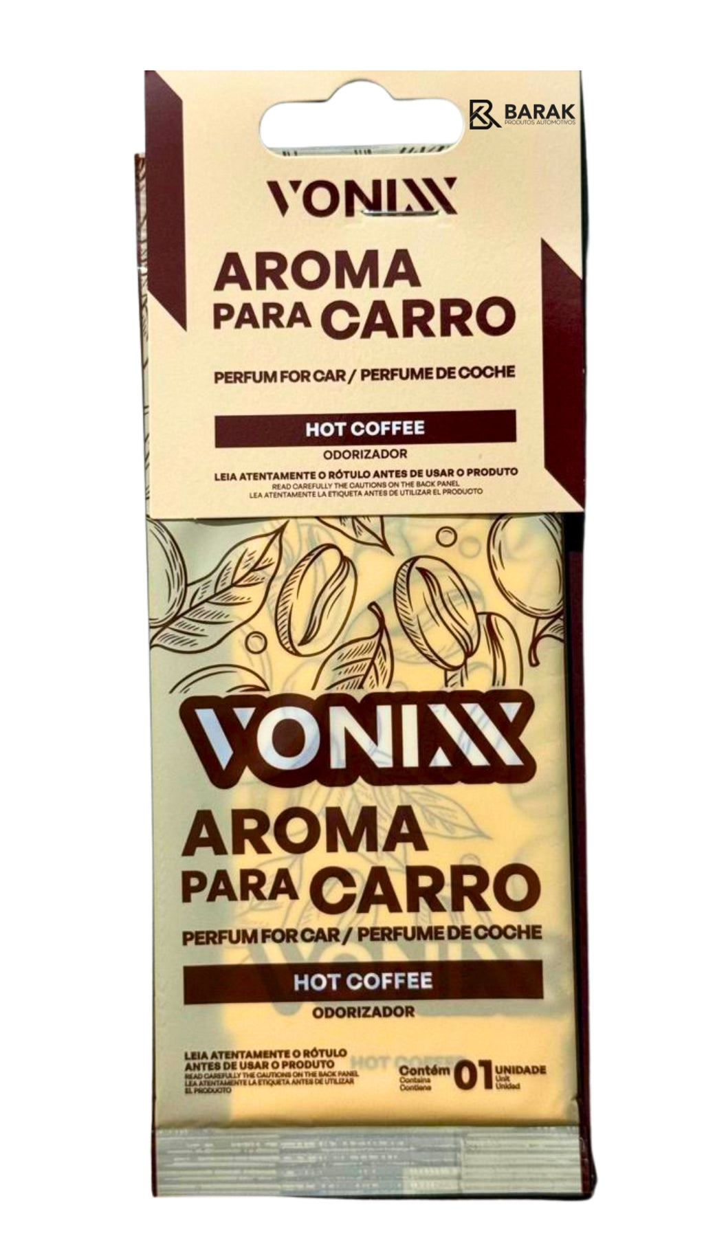 O Aroma para Carro Vonixx Hot Coffee foi desenvolvido para quem aprecia uma fragrância marcante, aconchegante e sofisticada, inspirada no aroma intenso do café quente. Ideal para perfumar o interior do veículo, também pode ser utilizado em diversos ambientes como guarda-roupas, quartos, banheiros e escritórios.
